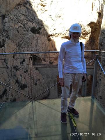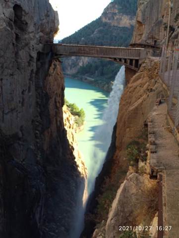 Like Patti in my latest novel, The Old Gals’ Bucket List, I have a big fear of heights. I can manage a small step ladder and am okay looking over a balcony providing there are high barriers and I look ahead not down, but sheer drops terrify me. The roads over here in Spain are notorious for going from a wide, flat road to suddenly changing into a narrow mountain track without any warning. Luckily, I’m not the driver so usually cover my eyes and repeatedly ask ‘are we on the level yet’. So when a group of friends suggested that we all do the famous Caminita del Rey walk my first reaction was ‘No Way!’ The photos alone were enough to put me off. El Caminito del Rey – The King’s Little Path– is a walkway high up on the steep cliff face of a gorge in El Chorro as you can see in the photo below. It’s become a major thing on people’s bucket lists to tick off .